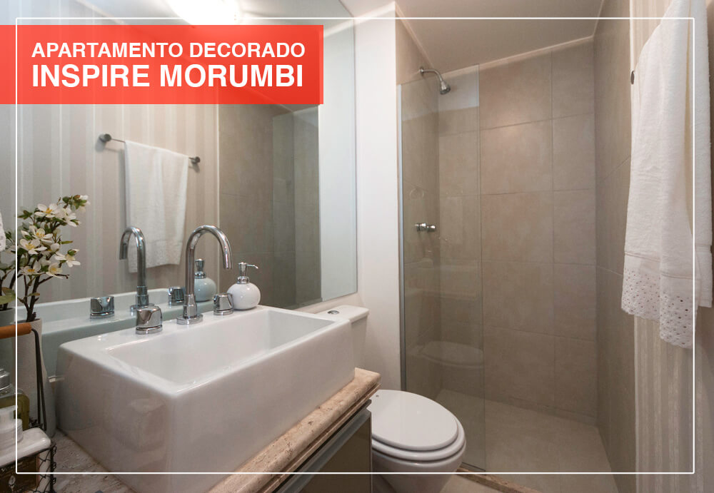 O uso de espelhos serve para qualquer ambiente pequeno. Com o reflexo gerado, é criada uma sensação de que o ambiente seja maior do que realmente é – além de tornar o seu banheiro mais elegante e moderno.