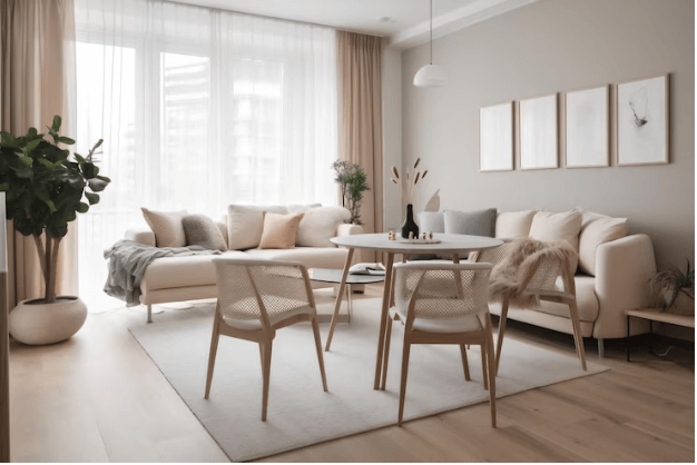 Este tipo de decoração é ideal para espaços pequenos, pois dá uma sensação de amplitude. Como também aprecia espaços abertos, aposta em móveis e objetos funcionais que facilitam a arrumação no dia a dia.