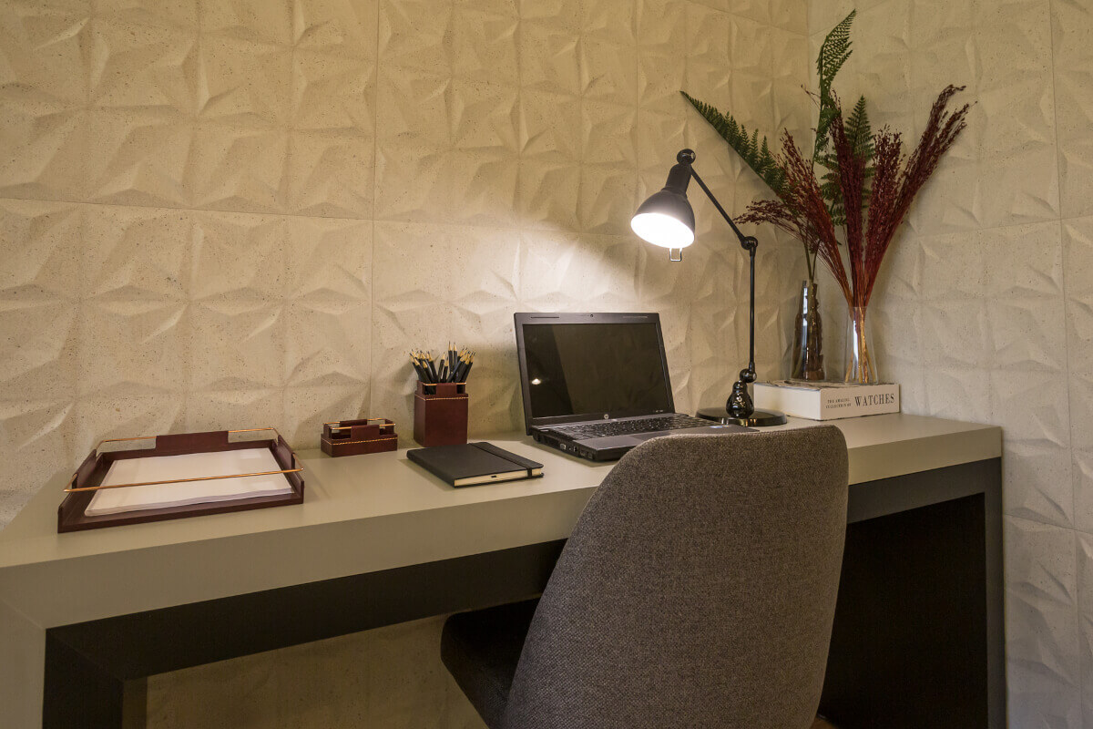 Se for necessário improvisar o canto de um cômodo, a melhor solução é investir em um móvel planejado para ter um melhor aproveitamento dos metros disponíveis. Mesmo assim, é importante que se diga, uma superfície capaz de acomodar um notebook, eventualmente uma impressora multifuncional e alguns itens de papelaria, já é o suficiente para começar.