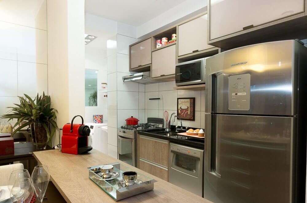 Para não comprometer a mobilidade e não faltar espaço para os utensílios que são necessários na cozinha, como talheres, acessórios, louças, eletroportáteis, panelas, formas… o ideal para cozinhas pequenas é optar por armários projetados para o total aproveitamento do espaço. Ao contrário do que recomenda-se para cozinhas grandes, os módulos separados, no caso das pequenas é melhor procurar móveis compactos e multiuso.