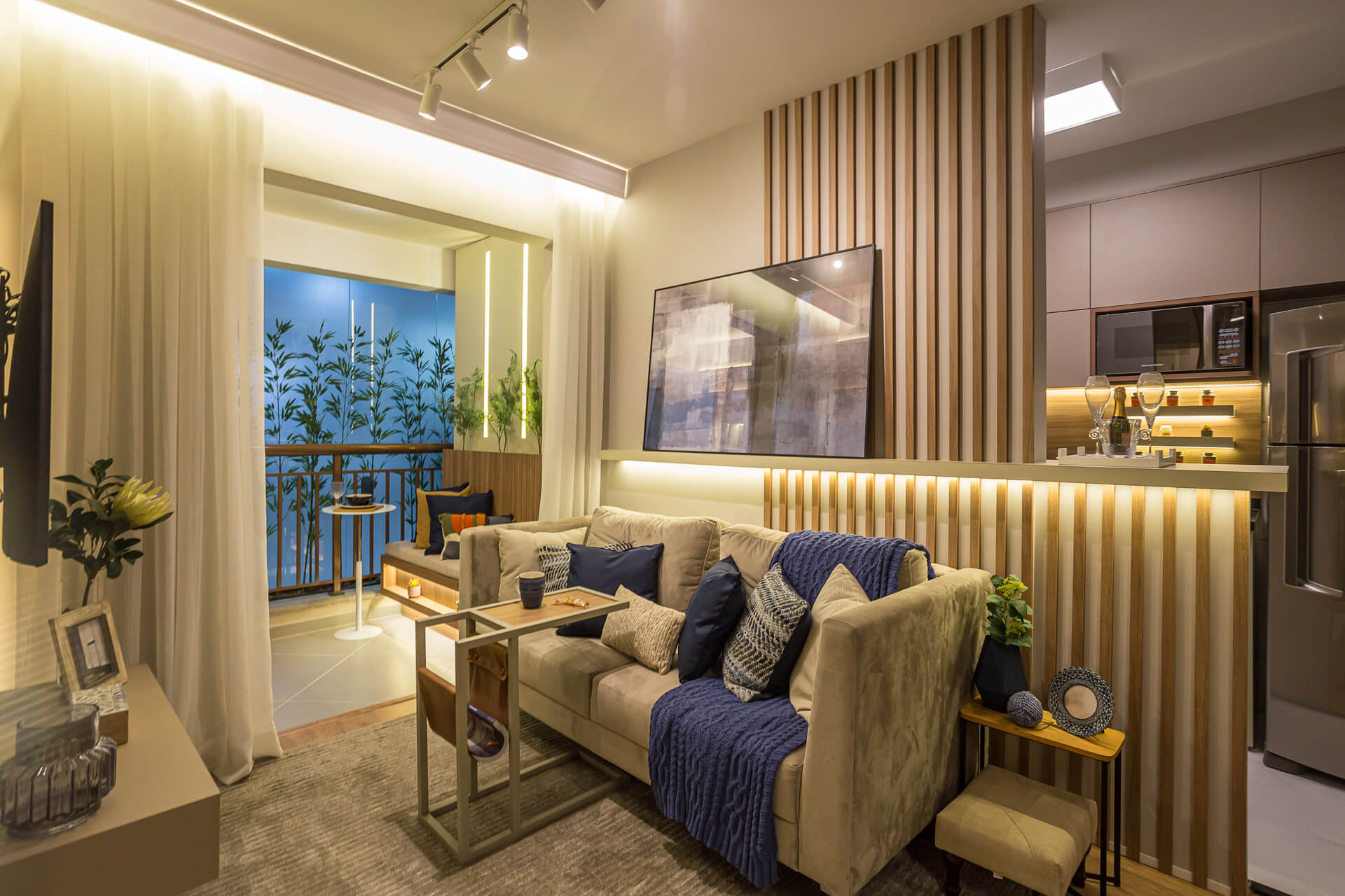 E não apenas porque isso soluciona o problema da perfuração excessiva de paredes e dos indefectíveis quadrados escuros nessa mesma superfície — e todo o aborrecimento que isso gera —, como oferece um visual moderno e cambiante ao apartamento.